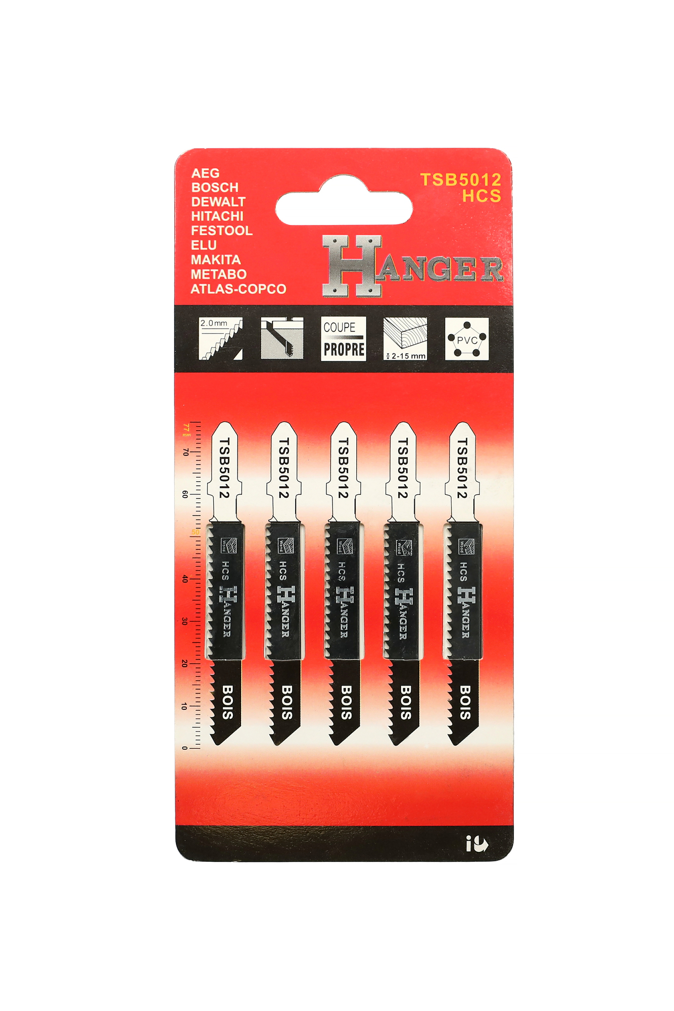 Pack de 5 lames de scie sauteuse TSB5012 pour le bois 50 mm HANGER 150219